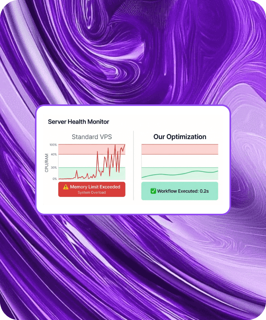 Many ask: can i self host n8n on a β¬5 server? You can, but it will crash under load. Our servers are optimized specifically for heavy n8n workflows. We provide ample resources so your automations fly.